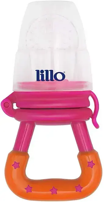 Alimentador Infantil Lillo Rosa – silicone atóxico, ideal para introdução de alimentos sólidos, fácil de segurar e limpar, com design seguro e funcional para bebês.