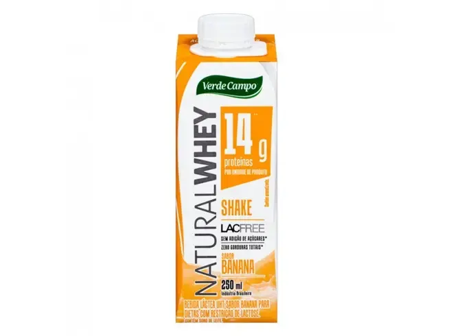Bebida NaturalWhey Banana 250ml: 14g de proteína, sem conservantes, adoçada com stévia e zero lactose. Ideal para pré e pós-treino ou lanches rápidos.