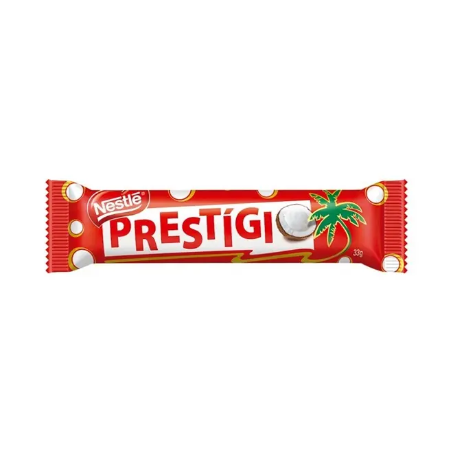 O Chocolate Nestlé Prestígio 33g é um dos produtos mais tradicionais da Nestlé, conhecido pela combinação de chocolate ao leite com recheio de coco fresco e cremoso. É uma opção prática para consumo individual, muito popular entre os amantes de chocolate com sabor tropical.