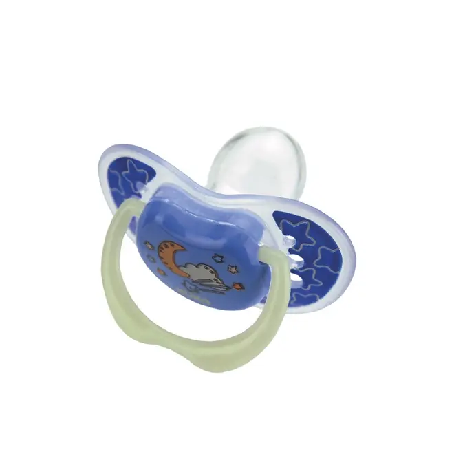 O recurso de brilho no escuro facilita localizar a chupeta em ambientes pouco iluminados.