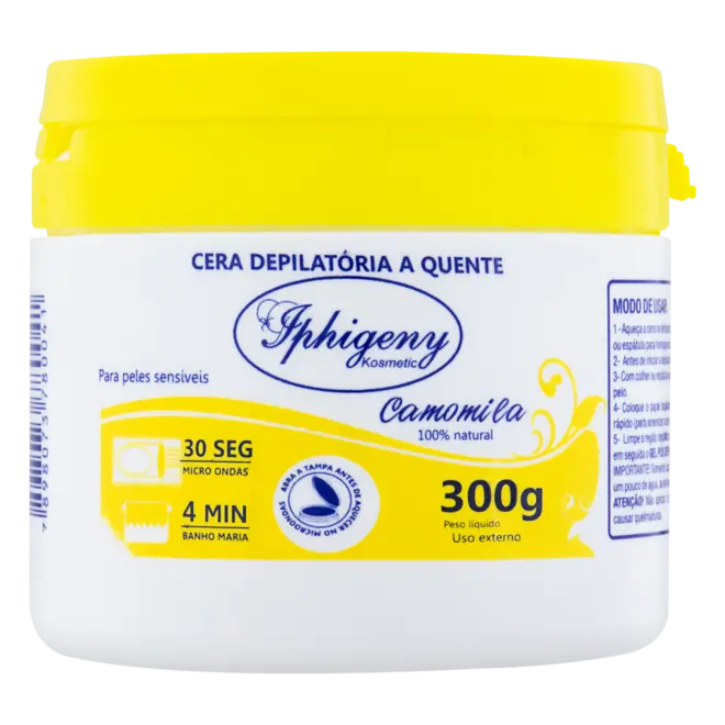 Depil Iphigeny Cera Camomila 300g: remove pelos com suavidade, deixando a pele macia, hidratada e protegida, ideal para depilação eficaz e segura.