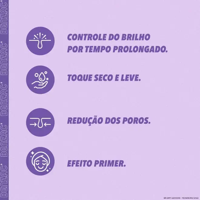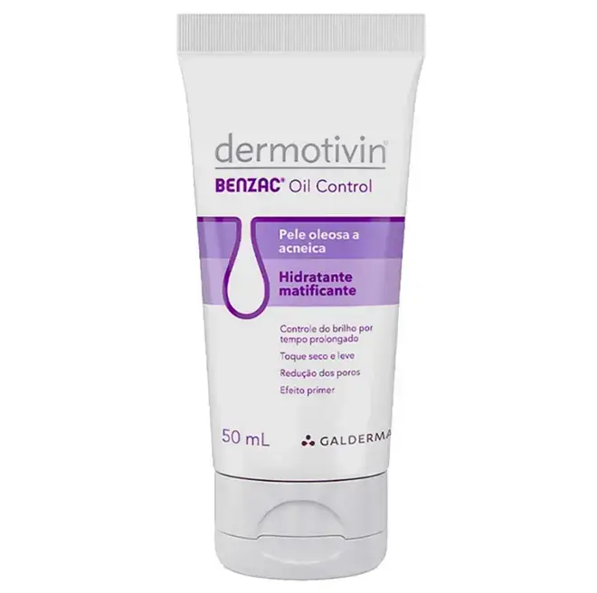 Dermotivin Benzac Oil Control 50ml garante 12h de controle de brilho e efeito matte. Hidrata, reduz poros e mantém a pele sequinha durante o dia.