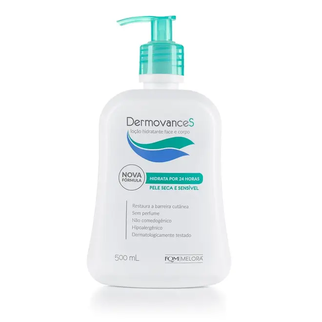 A Loção Hidratante Dermovance S é indicada para peles secas e sensíveis, e pode ser aplicada tanto no rosto quanto no corpo todo.