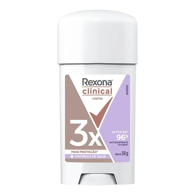 Desodorante Creme Rexona Clinical Clean Extra Dry Feminino é um antitranspirante que oferece 3 vezes mais proteção contra os desconfortos causados pela transpiração.