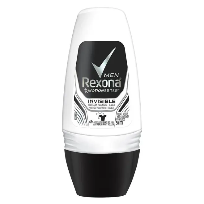 O Rexona Men Invisible é um desodorante roll-on que previne manchas brancas e amareladas em roupas pretas e brancas, causadas pela transpiração. Além de contar com Tecnologia MotionSense: composta por exclusivas microcápsulas que são quebradas pelo atrito dos movimentos, liberando proteção extra ao longo do dia.