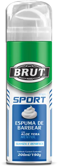 É um produto de higiene pessoal em aerossol, que se transforma em uma espuma densa e consistente ao ser liberado. Possui uma fragrância característica da linha Brut Sport e é formulado com ingredientes como aloe vera e mentol para suavizar e refrescar a pele.