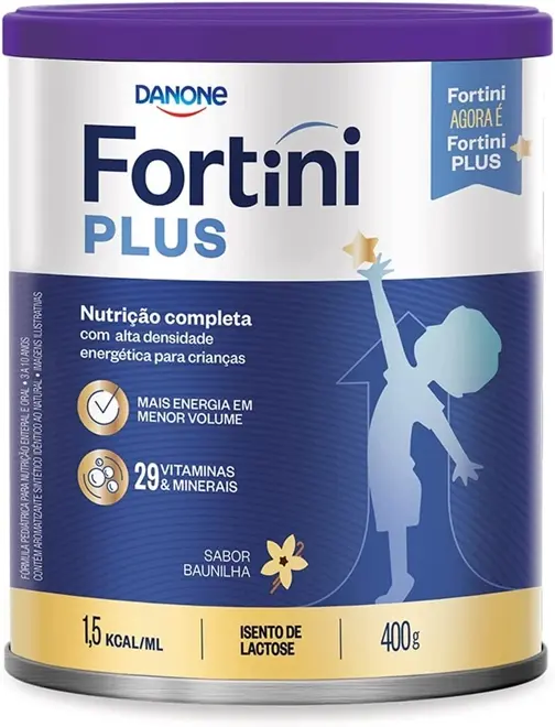 Fortini é um suplemento alimentar infantil, desenvolvido pela Danone que fornece energia, vitaminas e minerais aos pequenos de 3 a 10 anos de idade.Sua fórmula conta com vitaminas, minerais e proteínas, além de nutrientes especiais como Ômega 3 e 6, favorecendo a manutenção ou recuperação do estado nutricional da criança. Além disso, ajuda no crescimento, oferecendo os nutrientes necessários.Fortini é indicado para crianças em fase de crescimento e desenvolvimento. Durante esse período, crianças podem apresentar alguma falta nutricional, desnutrição, desaceleração do crescimento e má alimentação, portanto a suplementação é importante.
