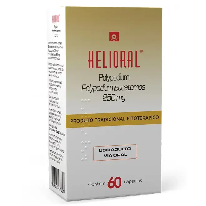 Helioral 250 mg 60 cápsulas auxilia na proteção da pele contra danos da radiação solar, ajudando a reduzir sensibilização e irritações causadas pelo sol.