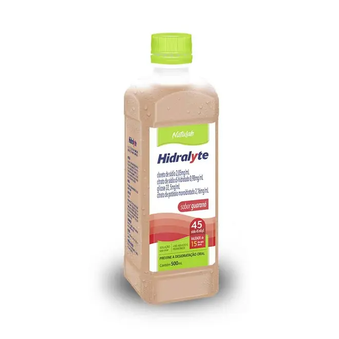 hidralyte 45 natulab sabor guarana 500ml sodio cloreto + potassio citrato + sodio citrato + glicose