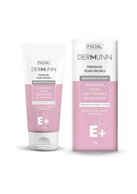 Hidratante facial Dermunn com ácido glicólico 50 g, renova a pele, melhora textura, hidrata e suaviza imperfeições para um rosto mais uniforme.