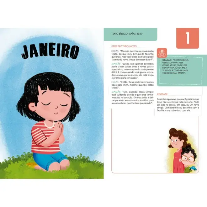 É um devocional infantil da Ciranda Cultural com 365 mensagens bíblicas, versículos e reflexões diárias, ideal para crianças que desejam fortalecer sua fé e aprender sobre os ensinamentos cristãos de forma leve e acessível.
