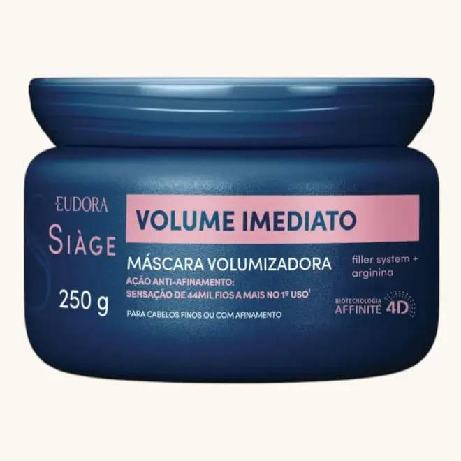 A Máscara Capilar Siàge Volume Imediato 250g da Eudora é um tratamento intensivo desenvolvido