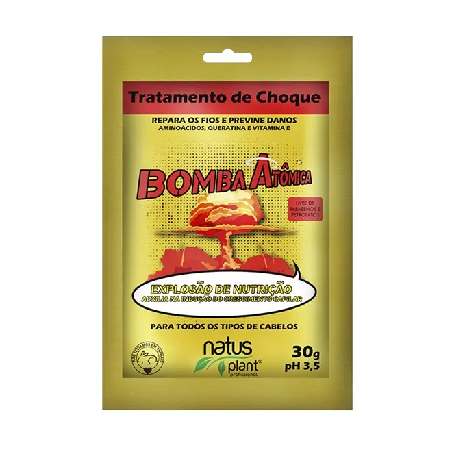 O Tratamento de Shock Bomba atômica possui fórmula concentrada, nutritiva e eficiente para restaurar os fios danificados, recuperar a resistência, fazendo com que cresçam saudáveis, evitando assim a quebra. Age repondo a massa capilar perdida, blindando as cutículas, melhorando a textura, prevenindo pontas duplas, proporcionando brilho, maciez, sedosidade, maleabilidade e leveza aos cabelos.