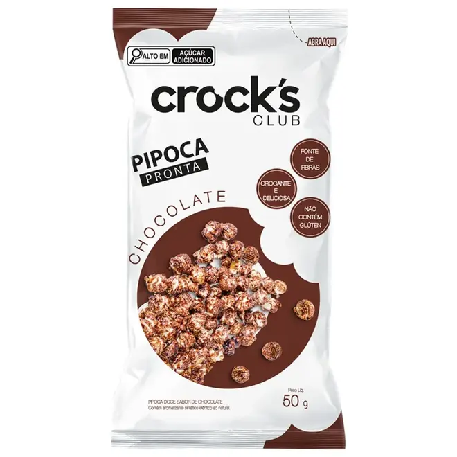 Pipoca Crock’s Club Chocolate 50g, pipoca estourada coberta por irresistível camada de chocolate — o snack perfeito para maratonas, lanches rápidos ou sobremesas.