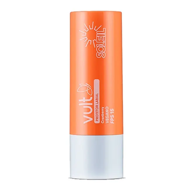 O Vult Soleil é um balm labial com proteção solar FPS 15, que mantém os lábios protegidos e hidratados por 8h após aplicação, graças a um complexo de vitaminas hidratantes com óleo de rícino.