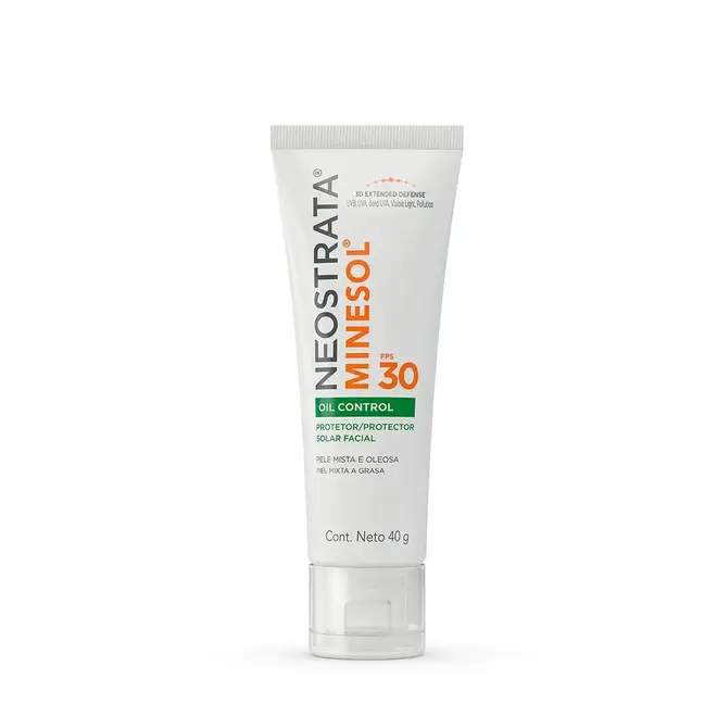 Desenvolvido especialmente para a pele brasileira, o protetor solar facial NeoStrata Minesol Oil Control Pele Oleosa é indicado para peles mistas a oleosas e/ou acneicas. Além de proteger a pele contra os danos causados pela exposição solar, ele reduz e controla o brilho e a oleosidade da pele por 8 horas.