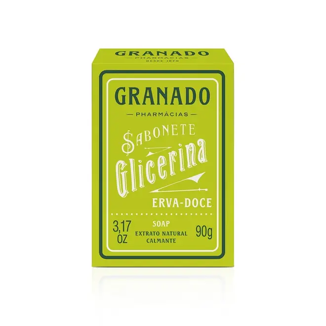 Granado Glicerina Erva Doce é um sabonete com base vegetal e glicerina 100% natural. Indicado para a limpeza diária de todos os tipos de pele. Não contém ingredientes de origem animal.
