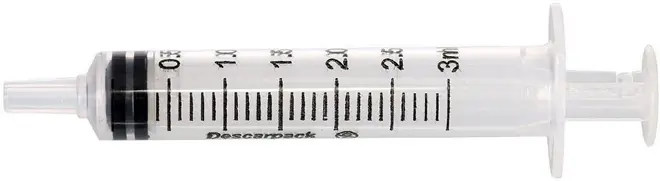 Seringa Descarpack 3 mL sem agulha, descartável, estéril e de uso único, ideal para diluições e aplicações sem agulha com máxima segurança.