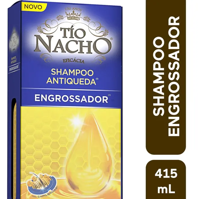 Shampoo Tío Nacho Engrossador Antiqueda, embalagem com 415 ml.