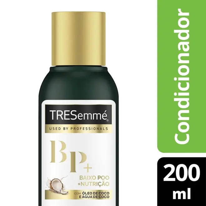 DESCRIÇÃO DO PRODUTO: O que é: O Condicionador Tresemmé Baixo Poo + Nutrição nutre e revitaliza a beleza natural dos seus cabelos. É ideal para quem busca produtos menos agressivos e mais suaves, pois sua fórmula é livre de silicones, parabenos e corantes. Para que serve: Possui fórmula enriquecida com Óleo de Côco e Água de Côco e deixa seus cabelos sempre nutridos, saudáveis e revitalizados. Pode ser usado todos os dias e é indicado para cabelos normais a secos. Modo de Usar: Após o shampoo, aplique o condicionador no comprimento dos cabelos, evitando a raiz. Com a ajuda dos dedos, vá desembaraçando os fios aos poucos, para deixá-los bem soltos e macios. Você vai perceber como a tecnologia TRES-Complex deixará essa etapa ainda mais fácil. Enxágue bem.