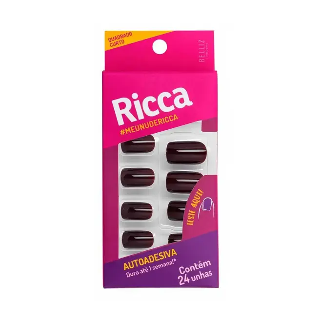As Unhas Postiças Ricca Autoadesivas são feitas em plástico flexível e resistente, além disso possuem cobertura UV, o que faz com que suas cores permaneçam lindas e brilhantes por até uma semana.Sua tecnologia autoadesiva dispensa o uso de cola, tornando a aplicação muito mais simples para que as #RiccaLovers possam ficar com as unhas prontas em qualquer lugar.São 24 unhas com 10 diferentes tamanhos para o melhor encaixe, com acabamento UV, proteção da cor e brilho em todo o uso.